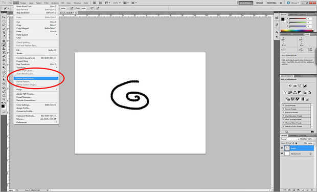 Con la selección activa, vaya al menú Editar en la barra de herramientas y elija Edición > definir pincel preestablecido. El nombre y guardar su nuevo cepillo. Fácil ¿verdad?