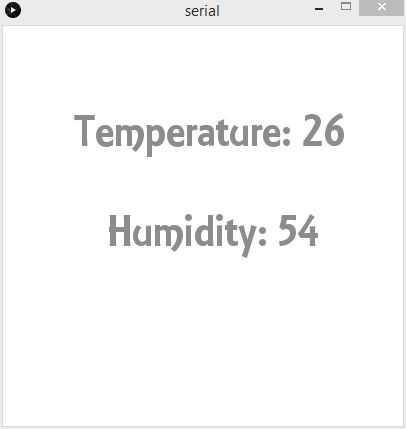 Para demostrar esto, va a utilizar un Arduino para enviar datos de un sensor de temperatura/humedad DHT11 el dibujo de procesamiento. El código de Arduino se adjuntó.