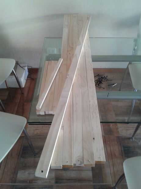 Para la madera luz rayas conseguirlos en mi ferretería cerca donde conseguir la mayoría de los materiales excepto la lana. Para el primer paso será determinar cómo altura desea su partitura de arco iris para ser (y como todo o cuantas partes tendrá). Por ejemplo cortar los grandes 3 en 6 pedazos de 159 centímetros de grande y el pequeño se que corté 6 trozos también de 46 centímetros de grande como usted puede verlo en la última foto sobre la mesa de cristal.