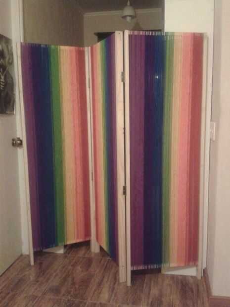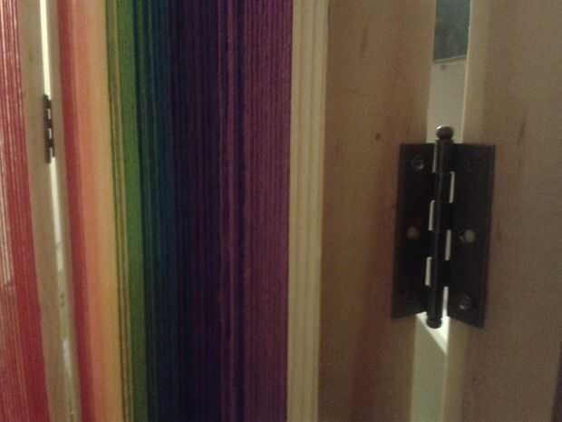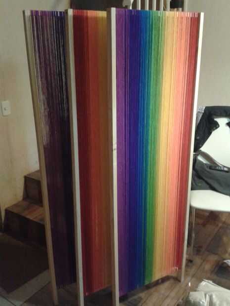 Y luego pones las bisagras uno cerca de la parte superior y la otra cerca del fondo para la estabilidad y ha creado su propia partitura personal de arco iris para su sala de estar, habitación etc..
