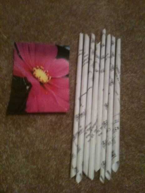 Continúe hasta que todas las 8 hojas han sido enrolladas en tubos apretados, resistentes. Te recomiendo escuchar música alegre mientras rueda--realmente ayuda a hacer el trabajo más rápido!