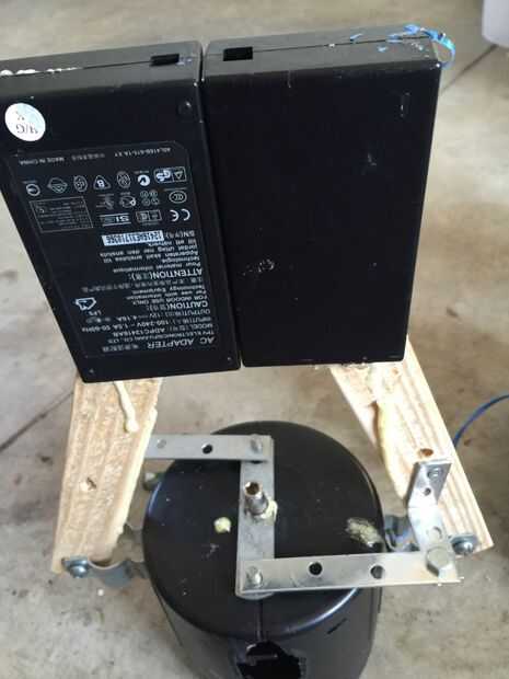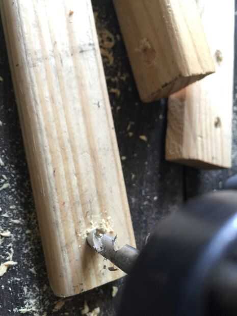 tornillo en solamente la parte superior del tornillo en el apoyo de la esquina a la misma altura que la parte superior de la carcasa de la linterna y una llave plana del perno hasta el final de la misma. Este espejo al otro lado. A continuación perfore un agujero en el centro exacto de una de las llaves (lo suficientemente grandes para el mandril destornillador que se está pegando hacia fuera) pegamento sobre el mandril destornillador eléctrico y perno a las dos llaves planas.