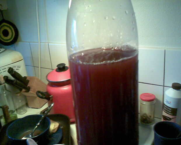 tropezado con este recepie que cuando salí de una botella de pie de limonada durante unos días. Era frambuesa y orgánico sin conservantes ni edulcorantes artificiales. Resultó como una bebida slithgly gaseosas, de bebidas alcohólicas y encantador. Tenga en cuenta que el producto final contiene una pequeña cantidad de alcohol.