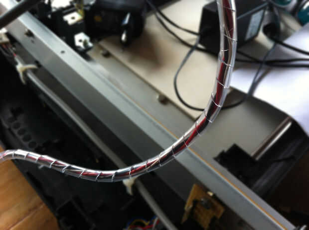 Una vez hecho el corte el tubo simplemente puede ser enrollado alrededor de los cables de perder. No hay necesidad de desconectar o desoldar los cables que queda muy cerca.
