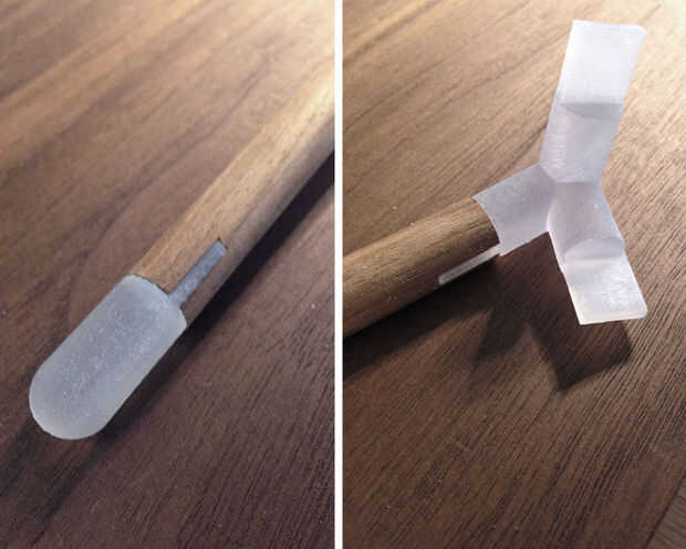Probablemente no es frecuente que te encuentres que los extremos de tacos redondos de la muesca, pero si lo haces siempre entonces probablemente tiene sentido hacer una plantilla agradable hacerlo. Como parte de un proyecto más grande (aún para ser instructabled) que utiliza un sistema de nodos o uniones paramétricas para conectar cualquier número de puntales (tacos de nogal en este caso) en cualquier número de configuraciones (muebles, estantes, sistemas, etc..) Me encontré que precisa de la muesca y alinee los extremos de los pasadores de madera.