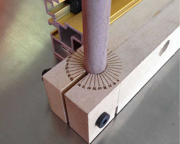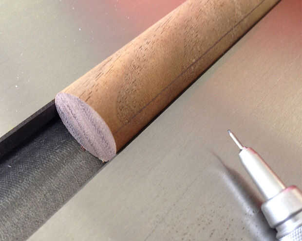 Si usted planea tener sus muescas en ambos extremos de la espiga en la misma orientación o ángulos uno al otro, es necesario trazar una línea de referencia a lo largo de la longitud de la espiga. Una buena manera de hacer esto es utilizar un pequeño trozo de ángulo o canal para marcar una línea precisa – Coloque el taco en un ángulo bajo o canal y presiónelo firmemente contra una de las patas mientras dibuja una línea a lo largo de la espiga.