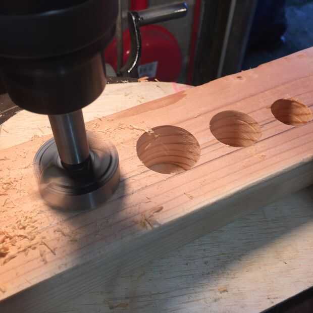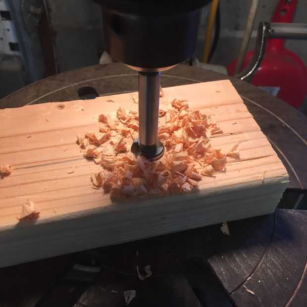 Dibujar una línea de base. La idea es alinear las partes inferiores de todos los agujeros de guía para esta línea. Usando una broca Forstner o sierra, haga una serie de agujeros de guía.