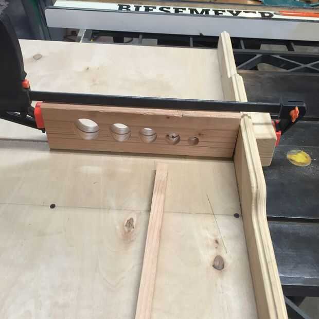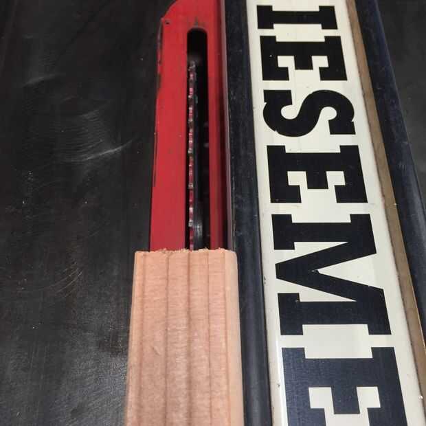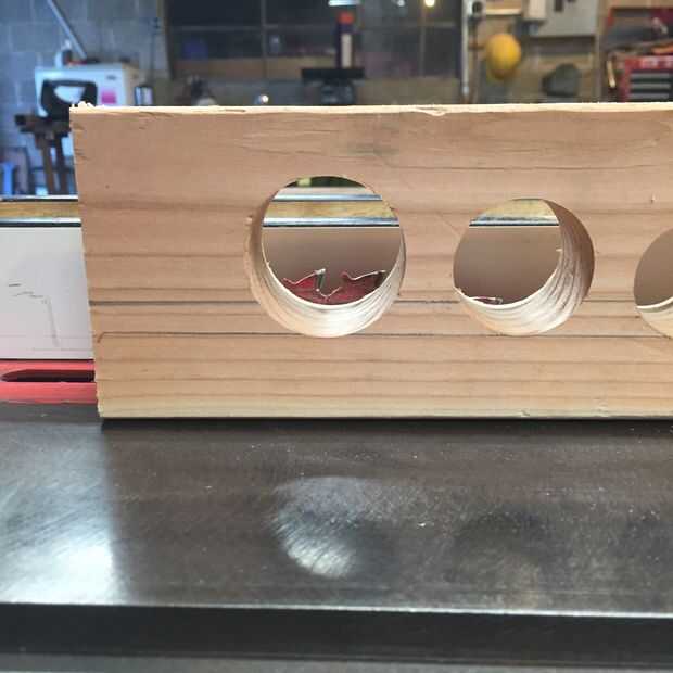 Ajuste el tope-guía para cortar al dividir 2 x 4 justo por la mitad. Levante la hoja lo suficientemente alta como para cortar a través de una cuarta parte del más grande del agujero. Pase el 2 x 4 a través de tres o cuatro veces.