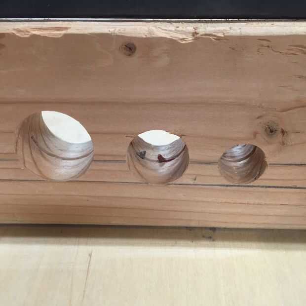Corte un pedazo de madera a un tamaño de cuadrado que cabe en uno de los agujeros. Encuentre el centro dibujando líneas de esquina a esquina en un extremo. Pase un tornillo de drywall en el extremo y conecte un taladro de mano a él. Poner el extremo cuadrado en el agujero redondo y girar con el taladro, la Sierra de mesa redondos de lámina hacia fuera de la espiga. Esto funciona mejor con una cuchilla corte transversal instalada en la tabla VI. Cada agujero es bueno para unos tacos de tamaño diferentes. Usted tendrá que experimentar para aprender configuración de cuchilla adecuada para espigas de tamaño diferentes.