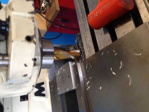 Luego molido por mi bloque para 2.5" en el extremo. La razón por la que hizo esto es porque mi stock es "plana" en los extremos tocando el tornillo de banco. Esto me debería dar una parte de la "Plaza". La razón de las comillas es porque es todo sobre lo que su tolerancia. Usé paralelos para mantener el nivel de pieza de la parte inferior de la mordaza. luego usé mi molino de extremo de 3/4" al lado cortada en él. Tomé 0,015" pasa con el corte convencional. Usé el eje Y que no tiene una alimentación por lo que de la mano la alimentación a 6-7 del minuto. Esto me dio muy buenos resultados ya que sería volver a una velocidad más lenta para cortar un poco más y eliminar cualquier desviación que obtuve en el paso inicial. Usé un RPM de 800.