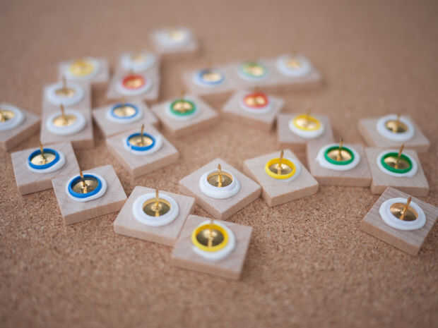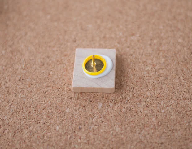 clavijas de empuje se utilizan generalmente para notas a un tablero de corcho. es estética y organizado, pero un tablero magnético es (en mi opinión) más aún, y es más seguro para los niños etc..Yo, personalmente, me gusta un diseño limpio y uniforme