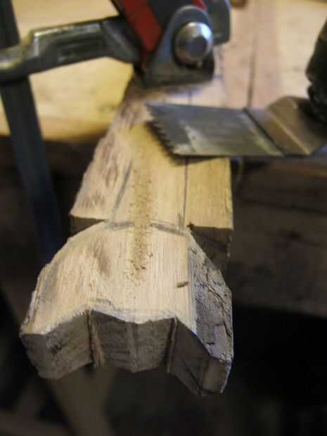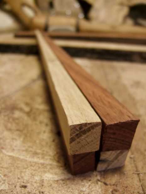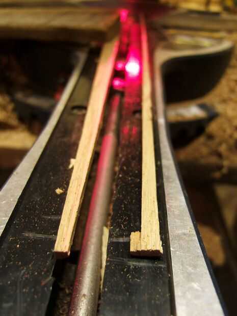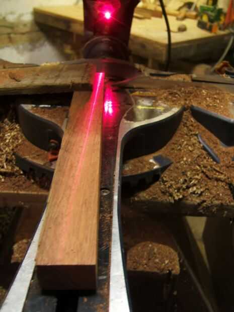 Nota: tenga en cuenta que este tipo de corte de la precisión con la sierra para cortar ingletes puede ser un trabajo peligroso. En lugar de mantener la rodaja de la madera en su lugar manualmente yo siempre amarrarla con un segundo pedazo de madera (visible en la foto izquierda arriba). Sierras para cortar ingletes la mayoría tienen las abrazaderas laterales confeccionadas para que sólo tengas que sujete un trozo de madera debajo de la abrazadera y en el segmento. Asegure el conjunto y comenzar a recortar en todos los de seguridad.