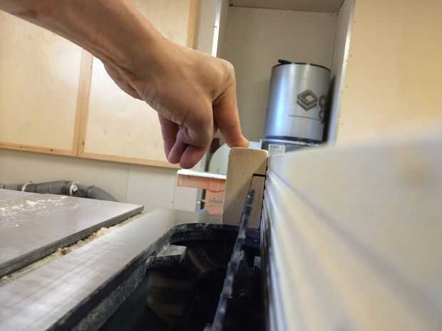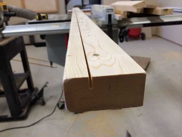 -Utilice 2 x 4 corte una ranura en la mesa de Sierra 1'' del borde 1/2 pulgada de profundidad.