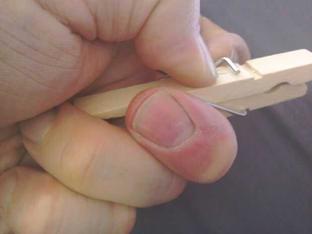 Lugar media la peg quijada hacia abajo sobre una superficie plana lugar una mandíbula inserta duro contra él y marca el grosor, hacerlo en ambos lados y con ambas mitades de la clavija. Decidí simplemente porque parecía que nivel con el resorte de fijación ranuras sería lo suficientemente lejos hacia atrás para suavizar las mordazas. Usé una sierra duro con maquinilla de afeitar con una pequeña caja de ingletes (vino con un marco de Sierra de corte de una tienda de bricolaje y coste alrededor de £5) para cortar a la espesa requiere entonces cortar la madera sobrante con un formón el mismo resultado puede lograrse con cuidado y un cuchillo pequeño