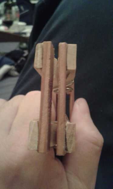 He aplicado una pequeña cantidad de pegamento en una capa delgada en los extremos exteriores de las clavijas y poner las barras de esparcidor en su lugar. Como todas las superficies son lisas y planas las barras fueron presionadas firmemente en posición y a la izquierda para curar sin sujeción.