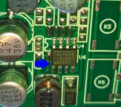 Pues bien, lo debemos hacer es soldar un cable al pin pin de salida o 2. Cuidado antes de soldar, para saber cual es el PIN 2 debemos buscar en el integrado un punto amarillo encima de una de las patillas de la esquina. El de es de ese punto indica ese PIN 1 por lo tanto el PIN 2 será justo el al lado.