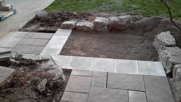Empecé con la parte superior de aterrizaje más cercana a mi porche y utilicé el porche para poner de porque quería que el paseo de la plaza para el porche.