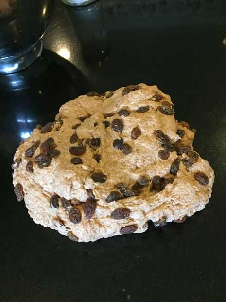 Un pan de soda básica contiene sólo 4 ingredientes: harina, bicarbonato, sal y la mantequilla. Sin embargo, este pan de soda normal se ha transformado en un encantador soda marrón oro pan con pasas de uva agregando un toque de azúcar, mantequilla y p