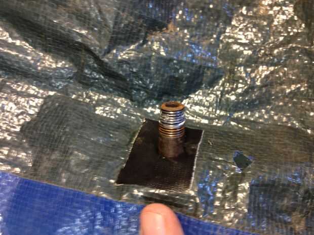 El problema principal que tenía que hacer frente fue cómo hacer un agujero en el plástico que sería lo suficientemente fuerte como para que no se corte el plástico cuando se tiró alrededor por las fuerzas del movimiento y la inflación. He probado dos cosas. Cortar el plástico con una navaja y derritió también un agujero con un soldador. La fusión parece producir un agujero más durable mejor en el plástico, así que me conformé con eso. Refuerza el agujero con un trozo de cinta gorila en cada lado del agujero. Abajo se encuentra una foto de mi pedazo de prueba. Tiró y tiró y trataron de rasgar el agujero y no pudo. Así que creo que tengo mi método.