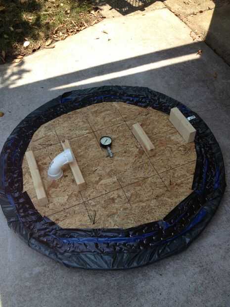 A continuación tuve que cinta y engrape la falda alrededor de los bordes del disco. Me arrancaron primero la burla de la falda y luego se coloca un trozo pequeño de cinta gorila en la lona para celebrar a la madera. Yo entonces sujetado con grapa a través de este hacer cosas permanentemente. Me aseguré que cada grapa pasó a través de la cinta y lona. Tenía que ser una capa de cinta gorila en la parte superior para asegurar que nada rip. El resultado final fue de 1 billón de grapas y una cuarta parte de un gran rollo de cinta gorila. sí sé mira trashy, pero qué diablos, sostenía: P