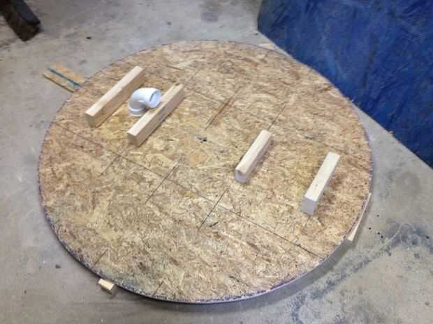 Estas cosas son baratas y tienen todas las propiedades para adaptarse a mis necesidades. Creo que gasté $1,99 en uno en blanco. ¿Qué más se puede comprar para $1,99? Sólo necesitaba correr algunas pruebas en cómo podría asegurar piezas de este a la parte inferior del disco. Pensé que puedo cortar hacia abajo como un pastel de carne en trozos gruesos de 2 pulgadas y luego la línea del perímetro externo del disco con ellos. Tomé un trozo pequeño y utiliza epoxi para fijarla a un pedazo de OSB. Luego coloca un peso encima y lo deje reposar toda la noche. El resultado fue perfecto. No importa cómo duro traté no pude tirar los tallarines del OSB. Sólo hay que cortar los fideos abajo y llegar a pegar.