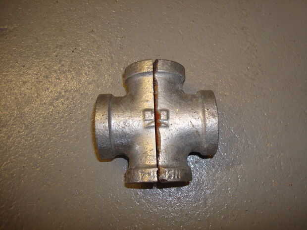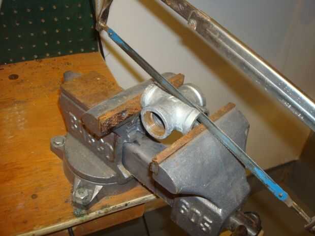 Corte 3/4" npt TEE en la mitad. He utilizado una sierra de arco, que corta la camiseta en mitad bastante rápidamente.