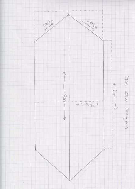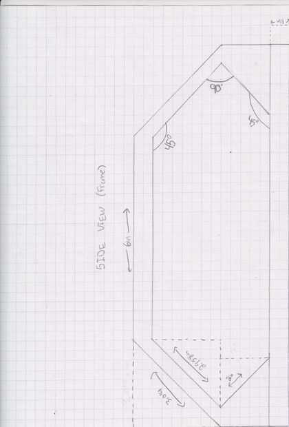 El primer paso al hacer los latidos es de gruesa esbozar su diseño en un pedazo de papel con una regla para las líneas rectas. Entonces desea etiquetar las dimensiones y los ángulos para el marco de los latidos y luego los latidos real sí mismo. Por favor refiérase a la foto de arriba para las dimensiones y los ángulos de ambos.