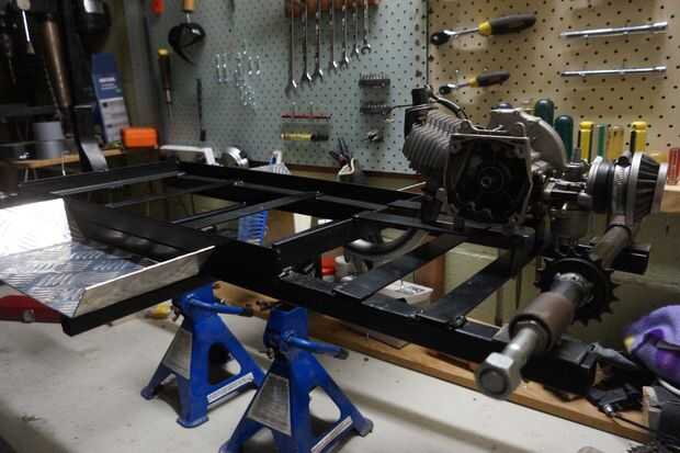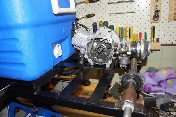Tengo un motor de 49cc barato de un compañero pero hay mucho en línea lo hacen un marco de trabajo para cualquier motor que permite espacio para un montón de juego para moverlo también hacer un eje trasero y puesto un piñón en él no ha terminado esto aún por lo que no existe cadena, embrague y caja de campana para el motor