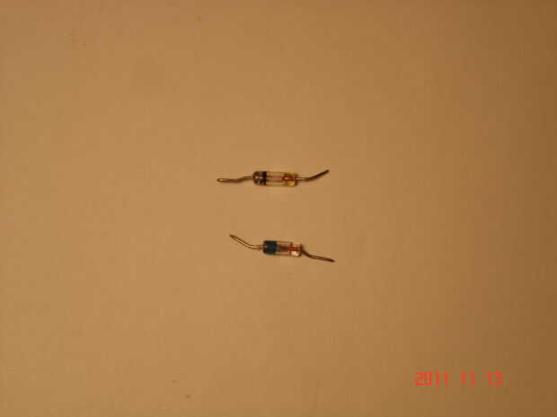 Para la versión uno, necesita dos diodos. Eso es él. Sin embargo es importante el tipo de diodo. Diodos de Schottky son lo que utiliza el circuito original, pero diodos de la barba de gato se pueden utilizar, como tienen una muy baja caída de tensión. Hice una versión medio de Schottkys, pero para este instructable contará con los diodos de la barba de gato. Esta versión es el circuito original de hielo negro.