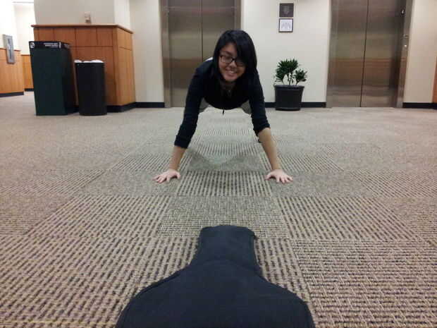 La alfombra tiene una rejilla que se puede utilizar como referencia. También usé una guitarra (en su caso) como punto de referencia. Se comienzan y terminan frente a la guitarra como en la foto.