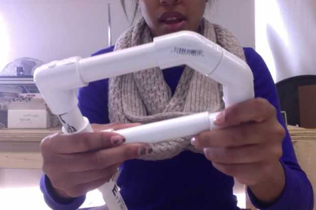 va a crear dos carta una V y P de tubería de PVC y accesorios. Las letras no pueden exceder 24 pulgadas por 24 pulgadas.Los accesorios se puede utilizar:codos de 90 gradosconexiones de 45 gradossalidas laterales de 90 gradosUniones en TTubo de PVCPas