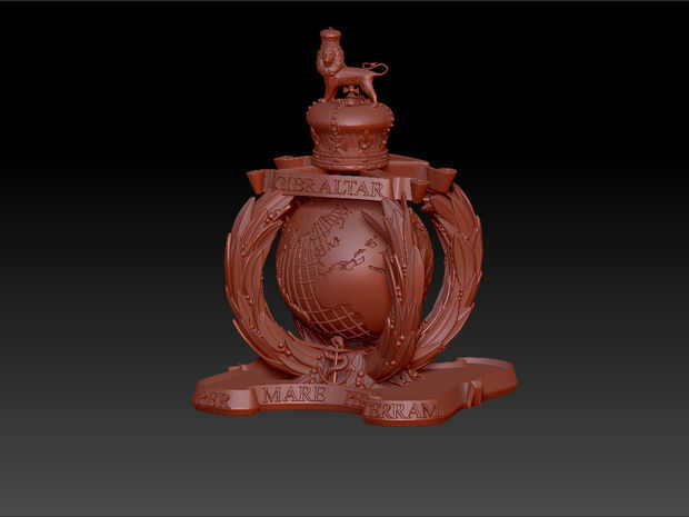 Para ayudar con los pasos más adelante de la imprenta y fundición de romper la pieza de en componentes separados; la corona, León, corona, ancla están todos modelados por separado. Pero es una buena idea revisar regularmente para asegurarse de que proporciones son correctas.