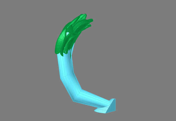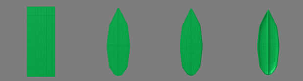Las hojas en la corona por ejemplo comienzan como una caja que saque en la forma derecha y subdividir para añadir detalle. Esta hoja básica se puede cambiar de tamaño y doblar en diferentes formas por cada hoja en la corona.