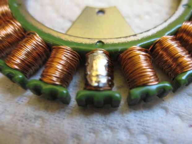 Una vez que cualquiera de las 2 bobinas para un dado conducido eléctricamente aislado (todos los alambres de conexión a otras bobinas quitadas), avanzar un agregar algunos de soldadura a la bobina (hará mucho más fácil aplicar el led por el camino).