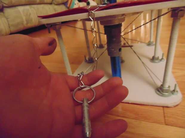 La caña se une mediante el tubo de pvc colocado en la parte inferior del tablero superior de plástico. La pipa sí mismo se atornilla a la brida que está conectada a través de los tornillos pequeños a través de la Junta de plástico. Para hacer la caña desmontable 1/2" agujero fue perforado a través de la caña y la boquilla de pvc. El pasador de encaje en el agujero. Al final no usar un casquillo de la pipa (de la factura y el archivo de sketchup) en el extremo del pezón no era necesario.