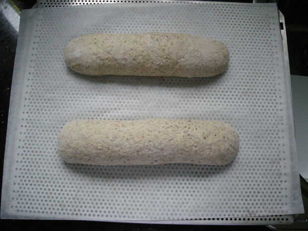 Poner sus panes en el papel de galleta y cubrir con papel plástico o una toalla húmeda.