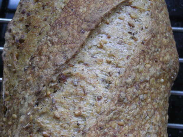 Este pan específico tomó un poco más de mi tiempo para asar el sésamo y para el secado y tostado de los granos gastados.