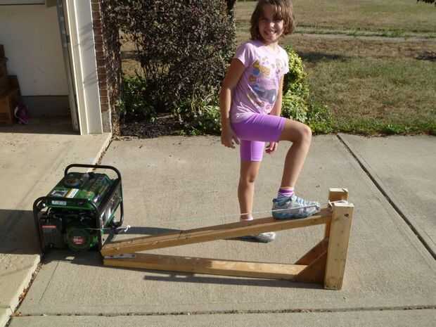 Muchas gracias por todos los ánimos.  Es realmente abrumador con el > 10.000 visitas en 3 días!  Encontramos que los pernos 1/4" para las poleas no son carnosas, así que por favor uso 3/8 si construyes uno de ellos.  Tuvimos que cambiar a ellos.  También hemos encontrado que la proporción de 4 a 1 es un poco mucho y que 3-a-1 funciona mejor para nuestro generador.  Mi esposa no era acertada en tratar esta noche, pero su cadera le estaba molestando y su electricidad no hacia fuera.  Por favor, hágamelo saber cómo tuyo resultan si haces uno.  Como un aparte, también estoy tratando de fomentar la ética del trabajo en mis hijos y he recibido algunos PM sobre la venta de ellos.  Pregunté a Emily si estaba dispuesta a hacer por $30 y parecía cosquillas en la idea.  Así que estamos considerando venderlos por ebay si le falta los recursos necesarios para hacer una.  Creo que una casa de negocio donde la recompensa (dinero) es proporcional al esfuerzo invertido sería una gran manera de inculcar la ética de trabajo y mostrar cómo una idea y siendo trabajadora pueden pagar.  Reviso el USPS y de Ohio a California era envío < $27.   Si hay interés y podrá configurarlo.  Una vez más, muchas gracias por todos los comentarios.  Ella pensaba que era genial para leerlo.