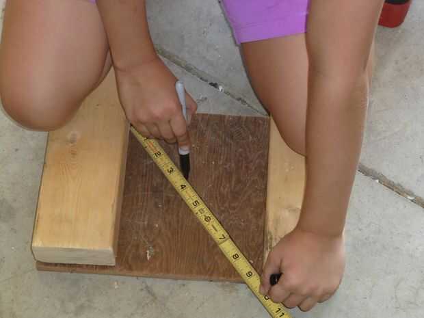 Es necesario un conjunto de refuerzos de los montantes. Estos pueden ser cualquier triángulo en forma de pieza de madera contrachapada u OSB.  Nuestra corte en triángulos y se dio cuenta que el pedal les afectaría en su recorrido hacia abajo.  A continuación ponemos una serie de listones guía en nuestros postes para mantener el pedal de conseguir pegado en los refuerzos.  Una mejora en este paso sería localizar los montantes en sus refuerzos e incluir la tira de guía en ellos como una sola pieza.  Incluso puede conseguir lejos con NO postes y a los refuerzos si están fabricados de un material más grueso y hechos 18" de alto.