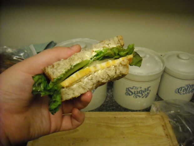 Super fácil bocado!Ingredientes:2 rebanadas de pan (Yo utilicé pan integral hecho en casa)1/2 taza de maíz o soja sin cáscara2 cucharadas de mayonesa (yo usé casera)Sal y pimienta al gustoUn poco de queso rallado (opcional)1/2 cucharadita picado pere
