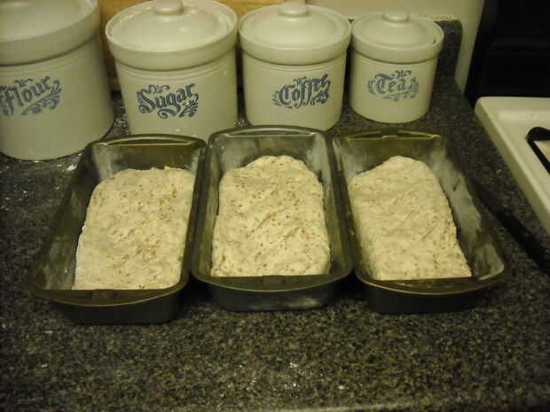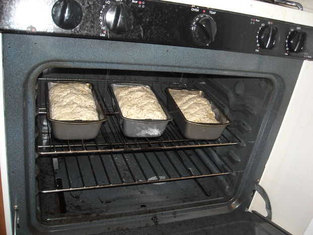 Mientras que el pan es aumentar grasa en harina las cacerolas, si usted las está utilizando. Esto se hace tomando algún tipo de grasa, como margarina, mantequilla o crisco, y usando los dedos o con una toalla para limpiar cada interior superficie de la olla. Luego puede toma un poco de harina y agita los recipientes para la capa de la superficie y entonces a volcar cualquier exceso de harina.