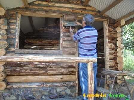 En un edificio de este tipo encajan perfectamente los troncos perfectamente para prescindir de la labor de tapar los huecos que quedan en las uniones de los troncos. Para ello sería necesario trabajar los troncos para obtener accesorios tipo macho y hembra en todas ellas. Incluso después de expansión se produjo en la madera no habría ningún problema grande. No me refiero a que era imposible, pero sería muy difícil, más aún con troncos torcidos. En las casas modernas que se construyen de esta manera, es muy probable que los troncos se hacen con máquinas de carpintería grandes, pero mi cabaña, que pretendo ser una réplica de las cabinas rústicas que fueron construidos en la tierra del tío Sam, no lo hizo sentir tan perfectamente porque se tapavam las grietas con arcilla.
