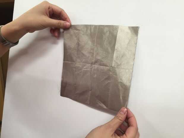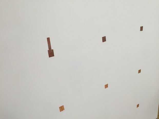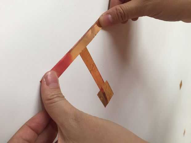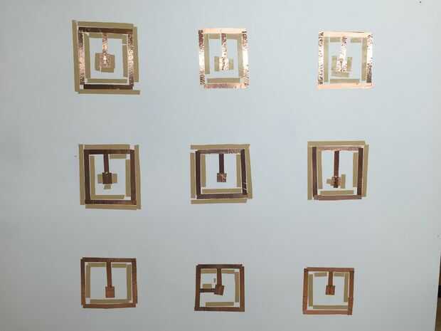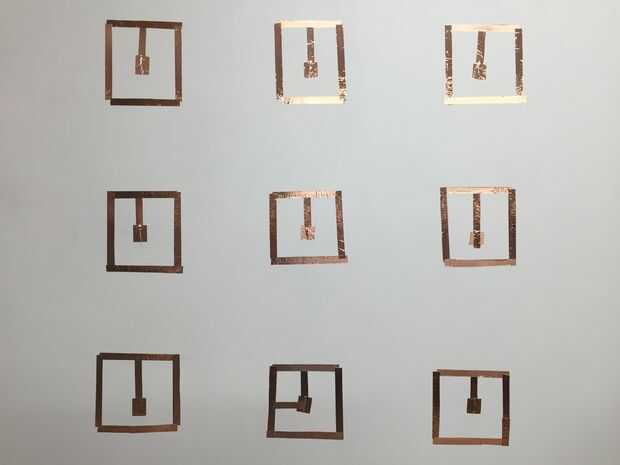 Después de encadenar los alambres a través del frente de la Junta, graba hacia abajo los extremos del cable con cinta de cobre. A continuación, creamos un área superficial más grande para hacer contacto con el tejido conductivo. Utilizamos cinta doble palo para establecer el tejido conductor.