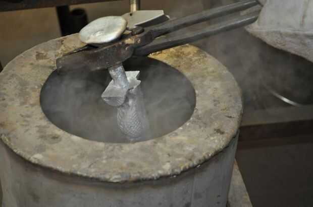 Es obvio que este objeto recién formado va a ser muy caliente, después de todo era metal fundido sólo hace poco tiempo. Es mejor utilizar unas pinzas si el objeto es lo suficientemente pequeño y permite, o usted siempre puede volcar agua sobre la parte superior del objeto para enfriarlo y evitar quemaduras al tocar la superficie caliente.