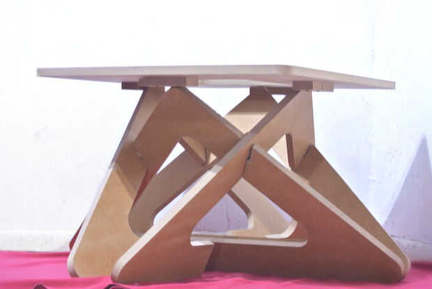 Mesa RTA, de MDF diseñada para espacios pequeños y pecado la utilización de pegantes para fácil transportación.