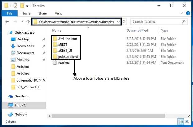 Si necesita agregar las bibliotecas para el Arduino sigue la ruta de ejemplo se muestra en la figura, es decir, C:\Users\Armtronix\Documents\Arduino\libraries. Entrar en la carpeta de bibliotecas y luego pegue el archivo en, como se muestra a continuación.