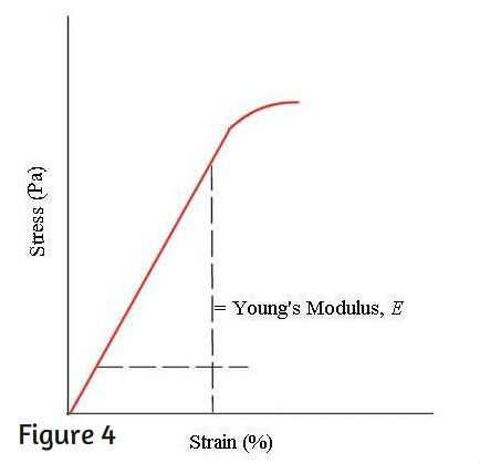 Como se dijo anteriormente, la pendiente de la porción lineal de la curva (unidades de Pa/(mm/mm), o el equivalente Pa) se conoce como módulo de Young y se denota como 'E' (ver figura). Otros nombres para el módulo de Young se puede ejecutar en son 'El módulo de elasticidad', 'Módulo de elástico' y 'Módulo de Young de elasticidad'.