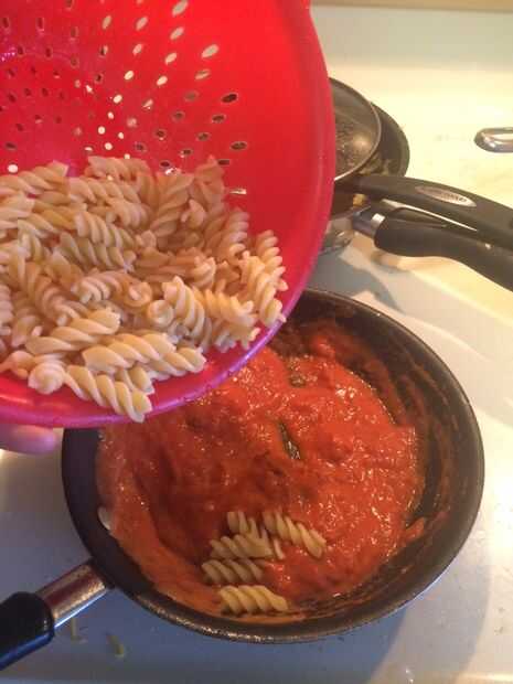 Después, mezcle la pasta seca en la cacerola de la salsa ya preparada vodka hasta que la pasta está cubierta.