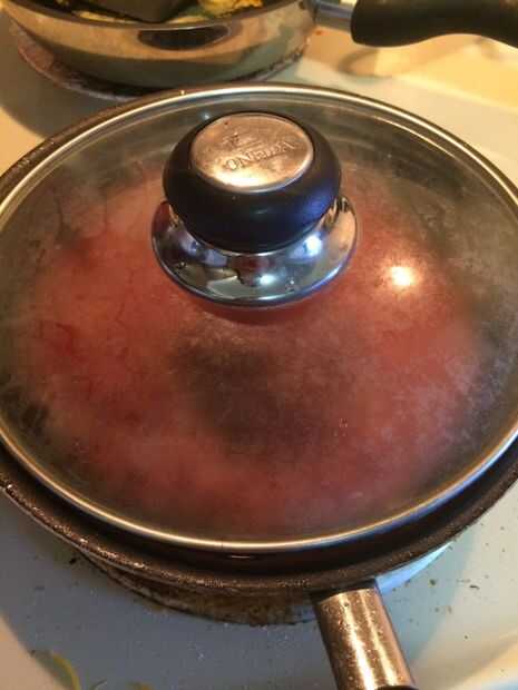La mezcla de tomates, sal y pimienta en la sartén y dejar la sartén a fuego lento en un ajuste poco calor durante unos 10 minutos.