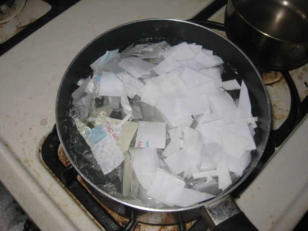 retorcido de papel de estaño, etc. [hilo conductor funciona mejor])